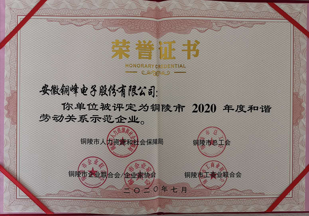 銅陵市和諧勞動(dòng)關(guān)系示范企業(yè)