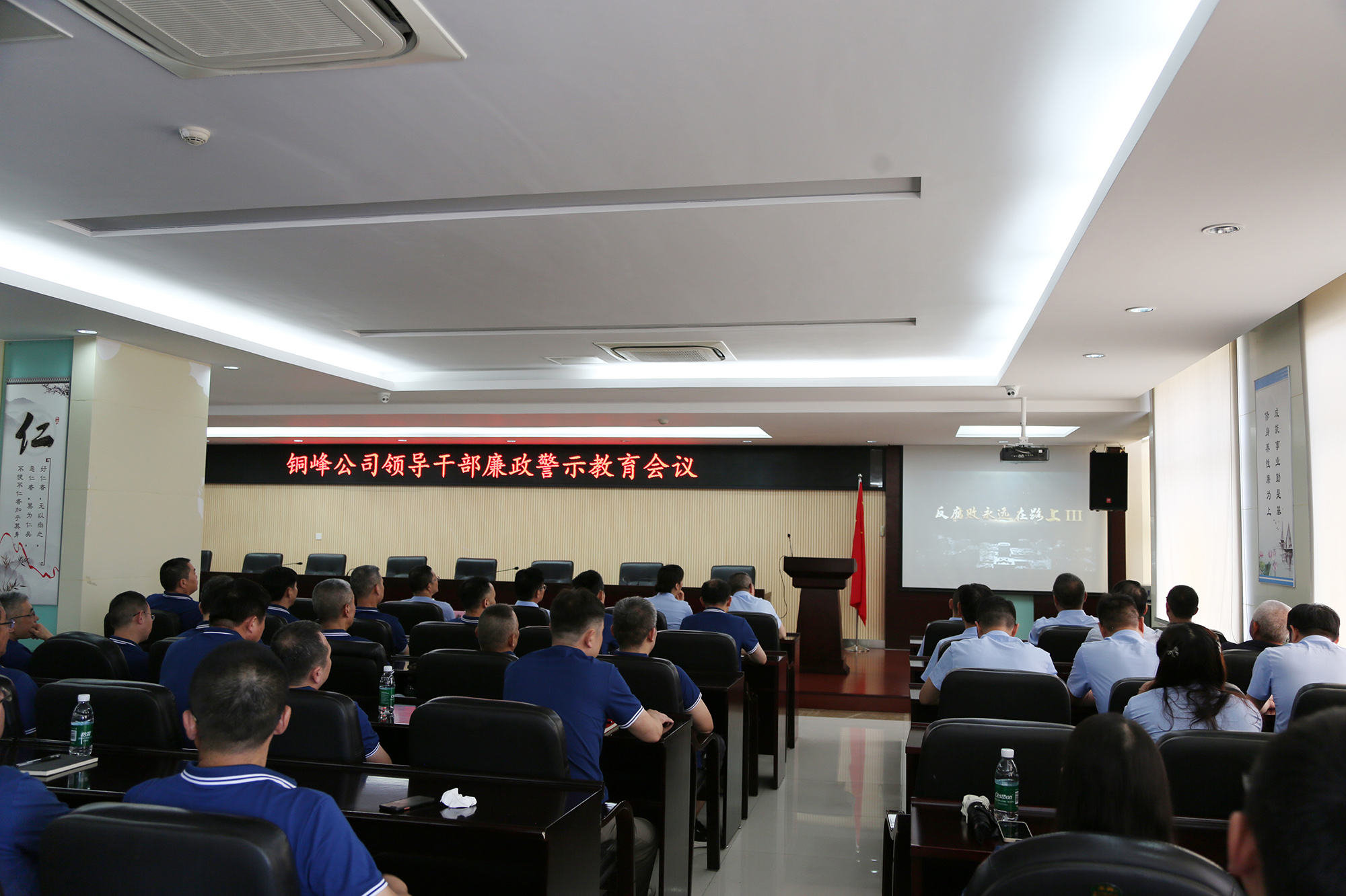 為深入推進“一把手”、年輕干部、新提拔干部、關鍵崗位干部等四類重點群體的學習教育工作,進一步加強黨風廉政建設,7月4日下午,公司在辦公大樓二樓職教室召開領導干部廉政警示教育會議。公司黨政領導班子全體成員,各黨(總)支部書記,各單位、部門負責人,機關職能部門主管和分(子)公司部門經理、車間主任及以上人員共計100余人參加會議。